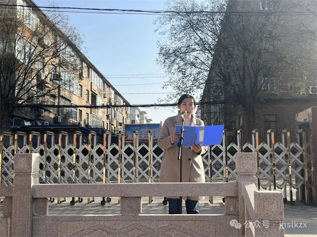 隨後,張岑朗老師發表講話。她以“河床與航標”為喻,生動闡述了法律對青春成長的規範與守護作用。她強調,與法同行需做到知法懂法、守法敬法、用法護法,從遵守交通規則、校園紀律等小事做起,在網路空間守底線、在社會生活講公德,用法律武器維護自身權益,以正義之心守護社會秩序。