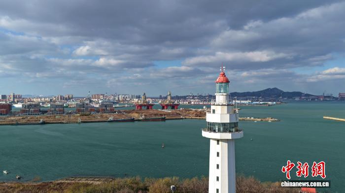 航拍煙臺山燈塔,該燈塔可俯瞰山、海、城風光。(無人機照片)侯波攝