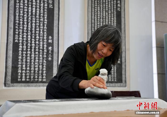 12月6日,“楮墨留真——東坡文獻海南金石拓片展”在海南省圖書館開展,圖為民眾體驗“浮粟泉”石刻拓印。黃方舟攝
