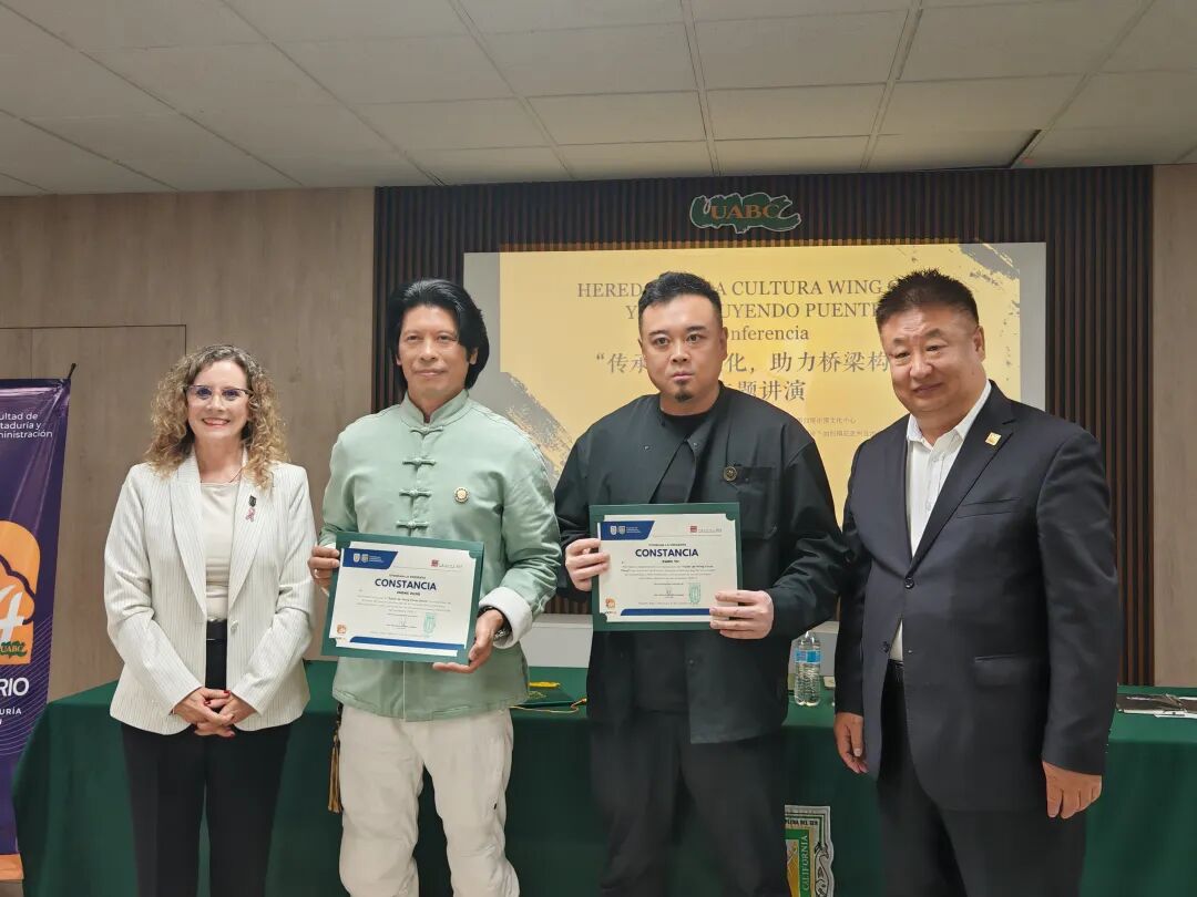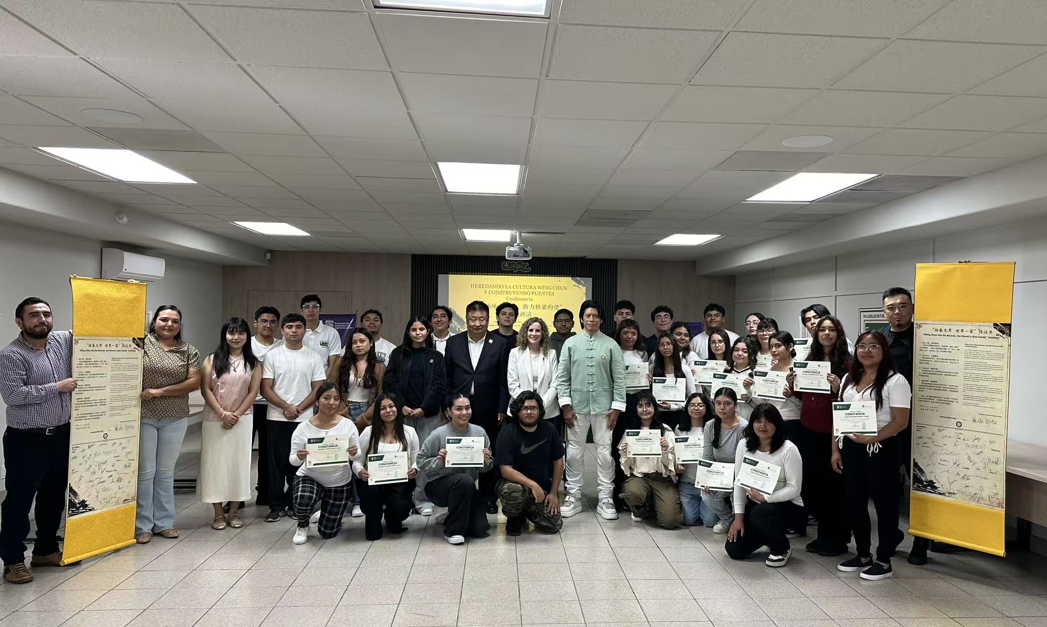 10月24日,中國咏春拳培訓班結業儀式在墨西哥下加利福尼亞州自治大學成功舉辦。本次培訓班為期一週,由墨西哥中國文化中心、下加利福尼亞州自治大學與福建傳統詠春拳(海峽)文化發展中心聯合主辦,吸引了該校120余名學生踴躍參與。培訓班由國家級非物質文化遺産保護項目咏春拳國家級代表性傳承人鄭祖傑及其弟子于康共同執教。