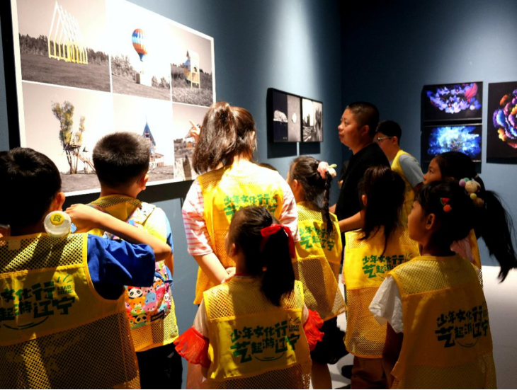 展覽中,每一幅作品都承載著假日生活的美好記憶與對遼寧文化的深厚熱愛。《瀋陽故宮・中秋夜》以月色為幕,將古建築的飛檐鬥拱與節日燈火相融,盡顯厚重歷史底蘊;《鴨綠江斷橋上國旗飄飄》聚焦紅色地標,用飄揚的國旗與幸福笑臉,傳遞家國同慶的濃厚情感;《少年藝趣啟蒙》記錄了孩子們在遼寧美術館研學體驗,定格文化傳承的鮮活瞬間;《舞韻國風國寶遼寧》《致敬》《尋找父輩的身影》等作品,或展現歷史文化的創新表達,或呈現“六地”紅色文化的豐富內涵,展現出遼寧歷史與現代交融、傳統與創新共生的文化風貌。