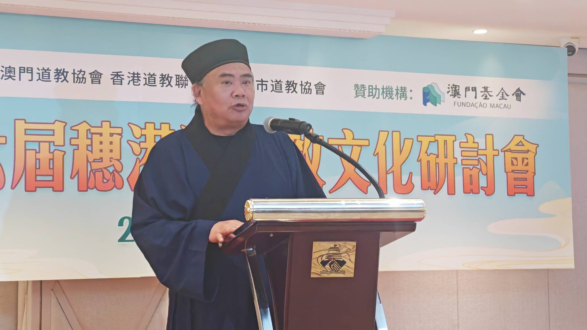 澳門道教文化節系列活動之“第六屆穗港澳道教文化研討會”18日在漁人碼頭展覽會議中心舉行,以“當今道教發展和現況”為主題,匯聚穗港澳三地及海外道教界人士、專家學者同臺交流,從而促進海峽兩岸及大灣區道教文化的整理與研究,推陳出新,更好弘揚道教文化。