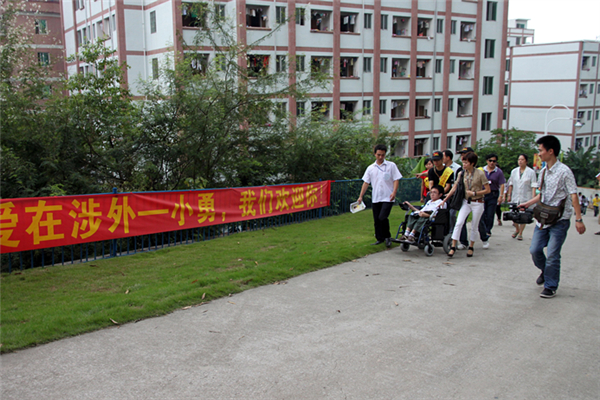 2010年的9月,“中國涉外教育”集團麾下的廣州涉外經濟職業技術學院新生報到的第一天,財金學院新生報到處來了一位特別的學生和他的媽媽——劉志勇和龔桂花。劉志勇身患“脆骨症”疾病,稍有不慎就會受傷;他生長在單親家庭,沒有正式工作的媽媽靠打工那點微薄的收入供他讀書,從學以來,一直是媽媽抱著他風雨無阻地走進課堂。當康董得知這不幸母子的感人故事後,立刻找到學校相關領導,研究對劉志勇今後的學習和生活的安排措施,決定免去劉志勇大學三年的學雜費;在學校內為其母親安排相應的工作,解決了母子倆的生活費用……在學校領導、老師和同學們的關愛和幫助下,劉志勇愉快地度過了三年的大學時光,順利完成了學業,走上工作崗位。劉志勇母子的故事感動了《魯豫有約》節目,在採訪中,劉志勇説,感謝涉外學院給了他改變命運的機會!