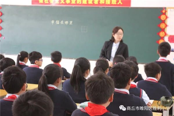 在上午的活動中,余清臣教授及他所帶領的北京師範大學專家團隊成員不顧遠途疲勞到校後即開始對學校的文化建設進行“把脈問診”。首先召開座談會,聽取了勝利小學校長張鳳仙有關學校的歷史沿革、新校區的規劃與建設、學校的辦學理念、課堂教學改革、學校文化建設方面所做的工作介紹,張校長針對學校文化建設現狀向各位與會專家提出了一些困惑。學校業務副校長宋崇立、德育主任袁鵬分別就學校的教育教學、德育工作進行了專題彙報。專家們對所提出的學校在發展中所遇到的問題進行了記錄梳理;接著專家們分別走進課堂聽了語文、數學、英語三節不同學科的課,感受學校的課堂教學改革氛圍;然後,專家團成員分別與校長、副校長與中層領導、教師代表、學生代表進行座談,了解師生們對學校發展的看法、願景。並向全體教師發放了《睢陽區勝利小學文化建設項目教師調查問卷》。