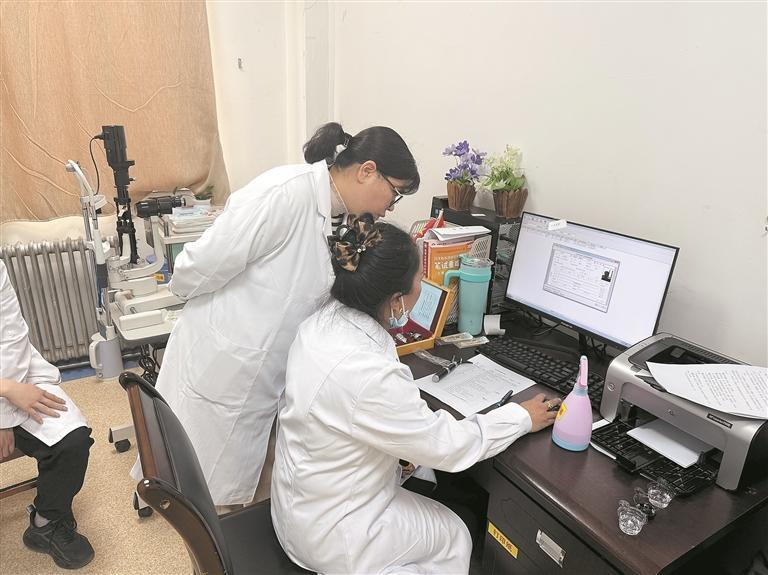 徐連那(左)指導年輕醫生工作(本報記者馬振東攝)