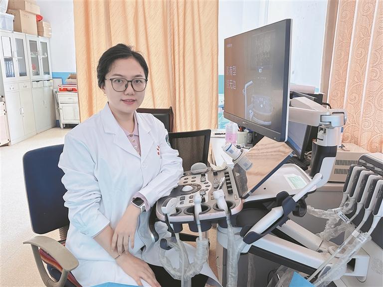 來自清華大學玉泉醫院超聲科的援青隊員杜晶醫生調試儀器中