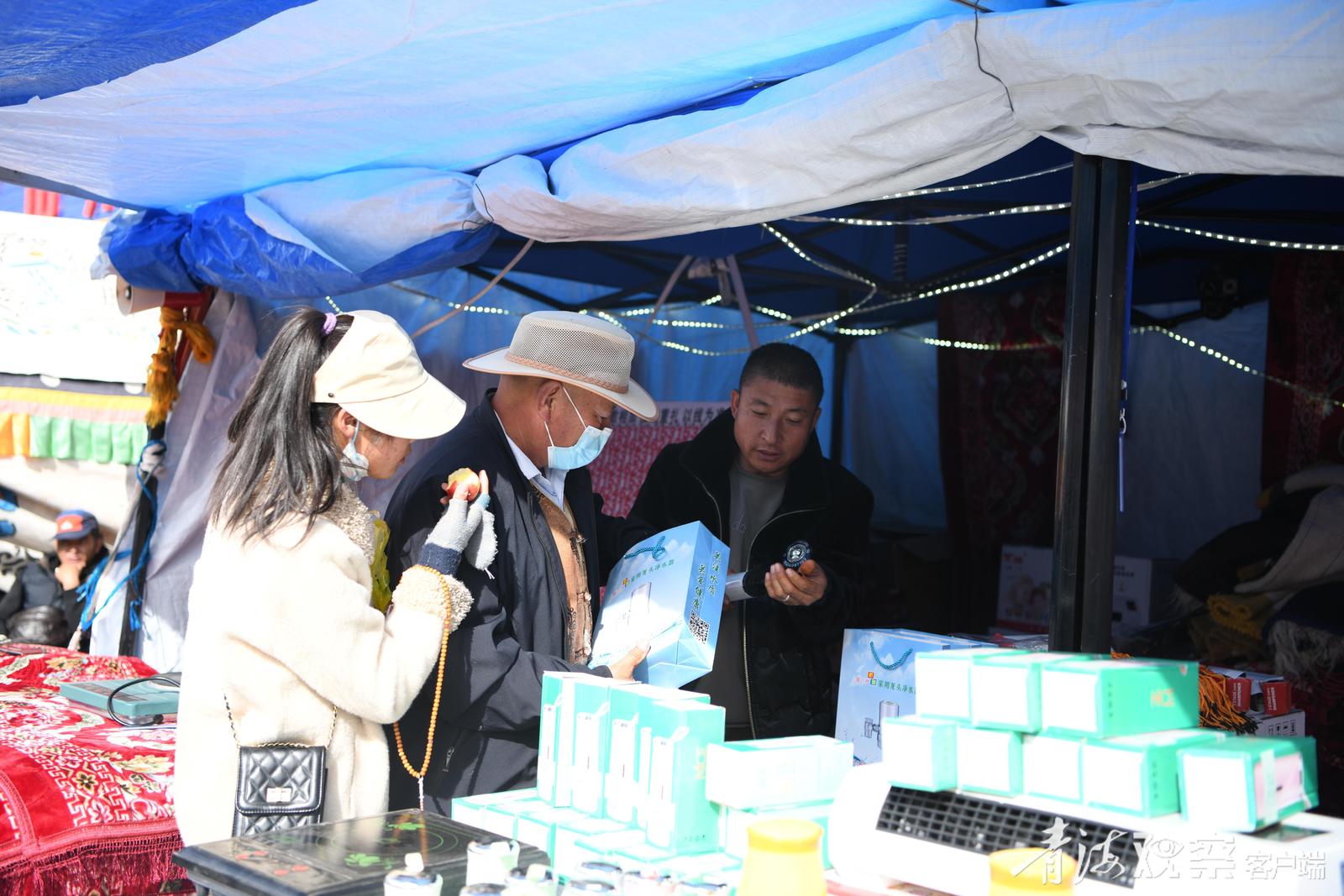 茶哈村村集體經濟合作社負責人代青旺扎一邊麻利地給顧客打包産品,一邊笑著説:“合作社能有今天的好勢頭,全靠‘企業+合作社+牧戶’的發展模式,這次更要感謝政府搭建這麼好的展銷平臺,冬天一般是銷售淡季,有了這麼好的平臺,跟著我們幹活的牧戶也能實現增收。”