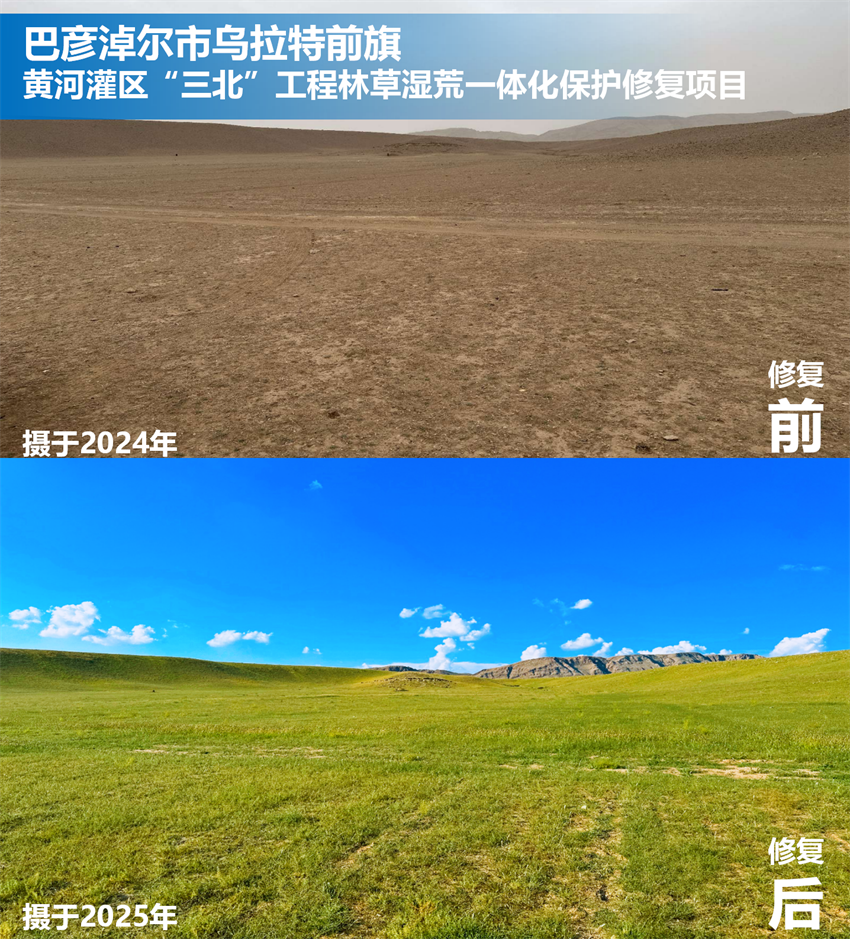 巴彥淖爾是我國西北地區防沙治沙的重要區域,境內分佈有烏蘭布和沙漠、河套灌區、沙化草原區等,“山水林田湖草沙”各類生態要素俱全,是黃河“幾字彎”攻堅戰核心區。蒙草治沙團隊建設新華林場科技治沙技術整合示範區,將新産品、新技術、新模式推廣應用於巴彥淖爾全域,累計完成防沙治沙面積近207萬畝。