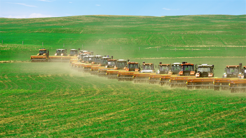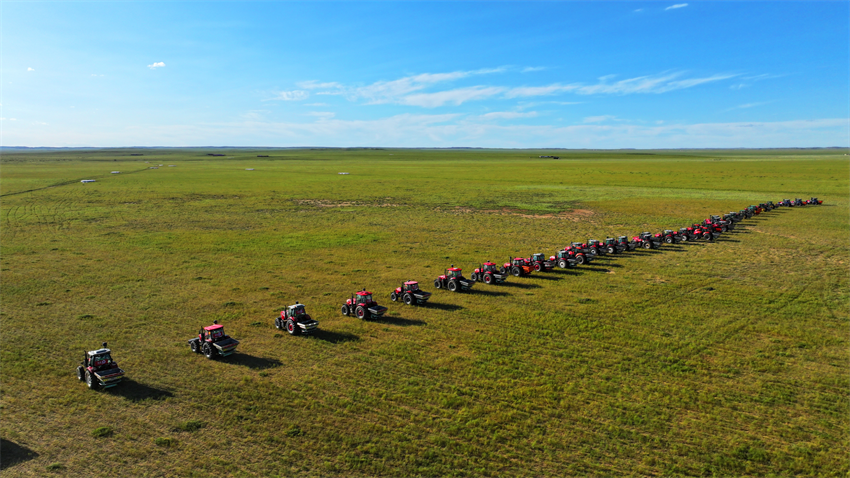 蒙草生態創新1300余臺機械設備,組建免耕補播機械隊、飛播機械隊、拋肥機械隊等專業機械作業隊,開展系統化、機械化、智慧化集群作業效率較傳統人工提升了20至30倍。