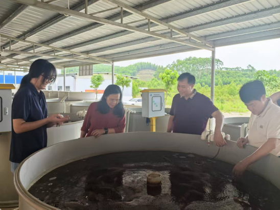 在廣西農業工程職業技術學院農業與生物工程學院實訓基地考察陸基生態養魚技術
