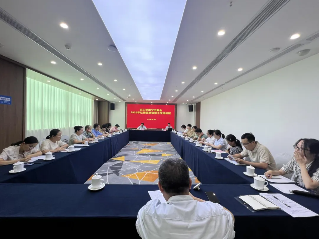 為深入貫徹落實農工黨中央“學規定、強作風、樹形象”主題教育要求,進一步提升黨員的參政議政能力與反映社情民意資訊工作質效,7月25日,農工黨南寧市委會舉辦2025年社情民意資訊工作專題培訓班。農工黨南寧市委會主委陳品堅出席並主持培訓,農工黨廣西區委調研部部長、一級調研員龐辛受邀作專題指導講座,部分資訊骨幹及近兩年新發展黨員共二十余人參加了培訓。