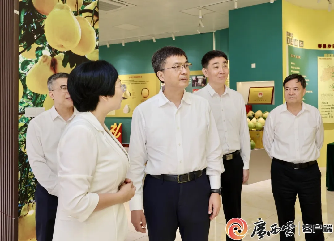 容縣松山鎮沙田村木蘭塘屯是沙田柚的“發源地”。陳剛在木蘭塘屯詳細了解基層黨建、鄉村治理及鄉村特色産業發展情況,要求繼續加強黨建引領,推動黨建工作與産業發展同頻共振、深度融合,發展壯大富民産業,推動一二三産業融合發展,不斷提升鄉村産業發展、鄉村建設、鄉村治理水準,紮實推進鄉村全面振興。陳剛還走進興業縣茗韻茶業有限公司生産車間和展銷廳,詳細了解智慧茶園建設、生産加工、市場行銷等情況。當得知該企業是玉商回歸企業,實行“公司+合作社+農戶”發展模式,帶動200多名當地群眾就業時,陳剛給予肯定,勉勵企業做優茶葉品質,進一步加大宣傳和行銷力度,提升産品附加值,帶動更多群眾就業增收。