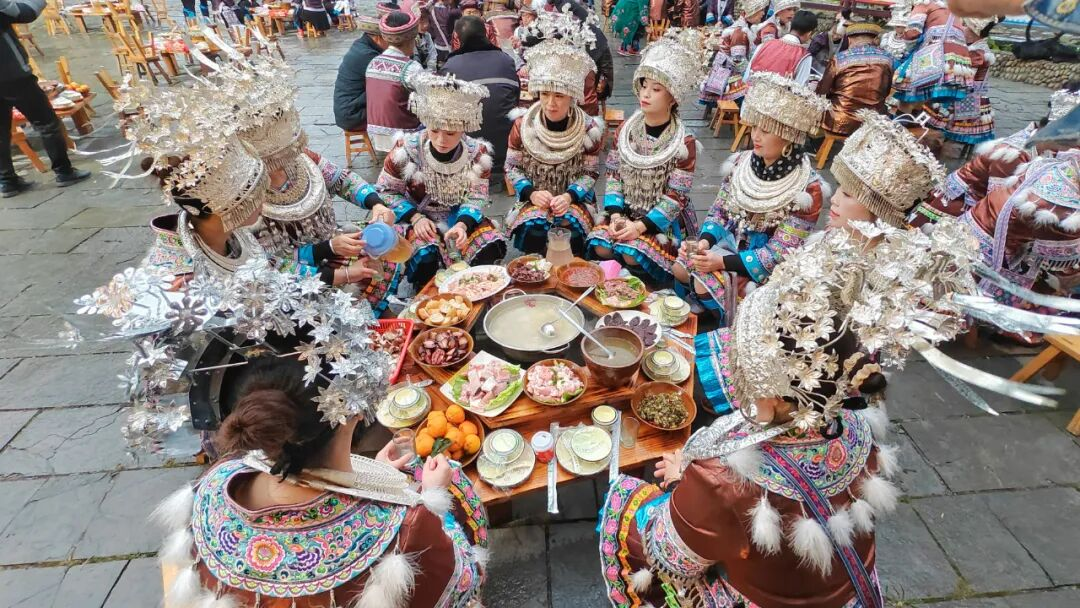 同年宴是苗家最高的待客禮節,也是最有苗味的民俗活動。大家在一起共用苗家美食舉杯暢飲,把酒言歡。
