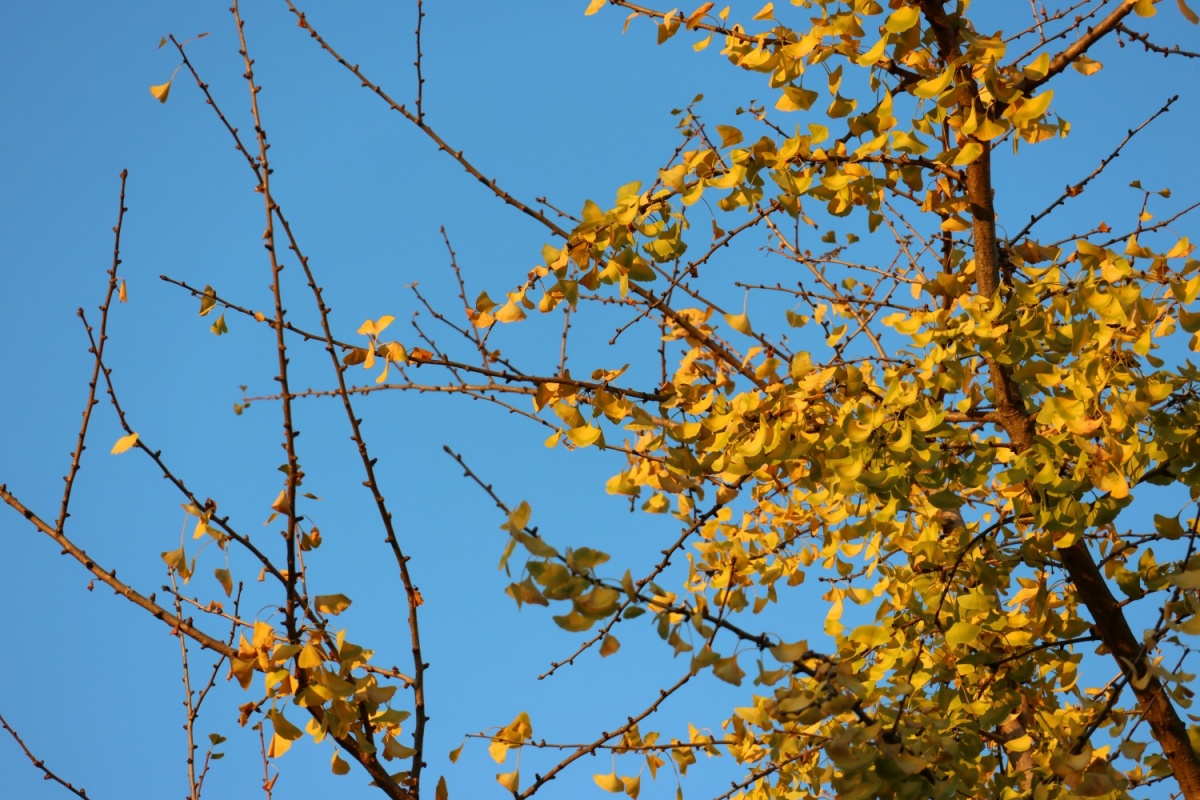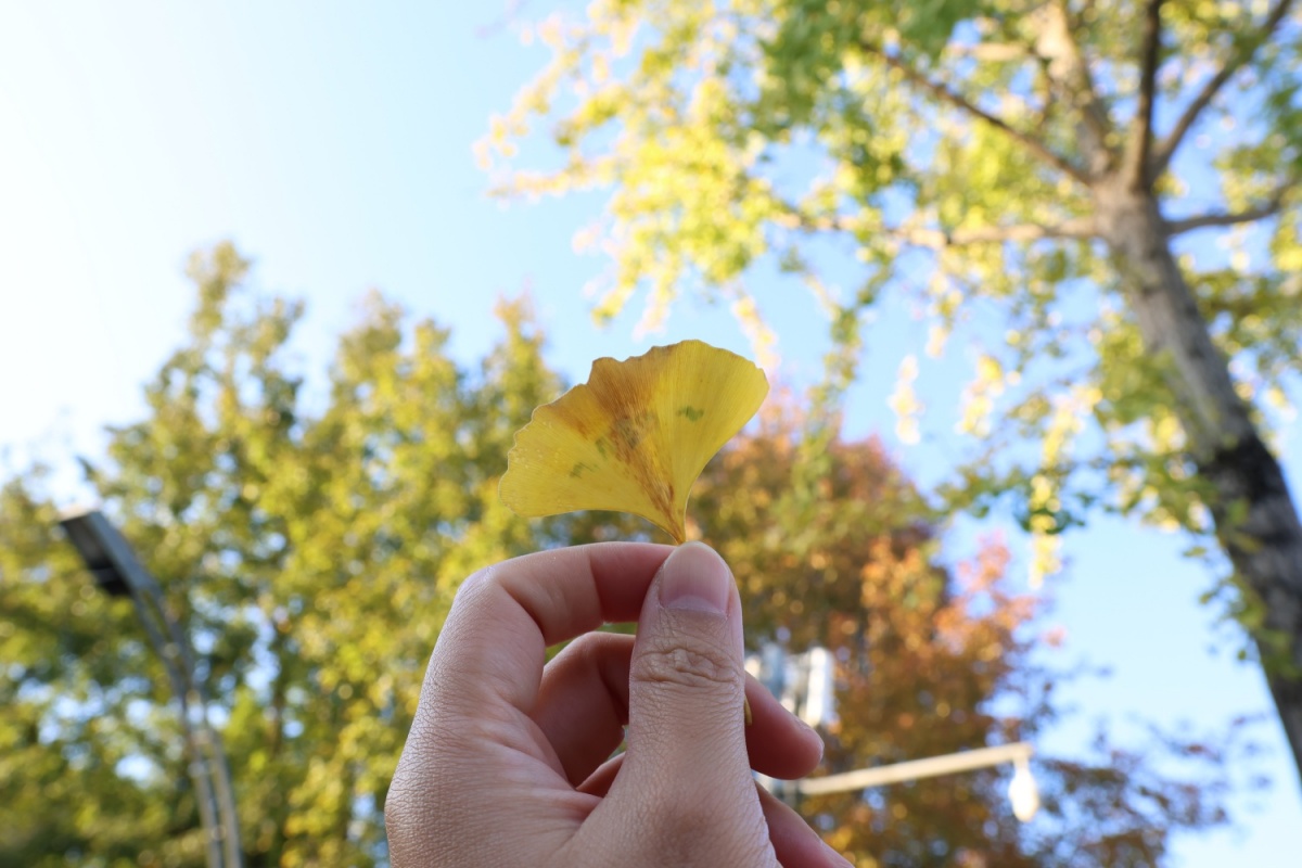 行道旁的銀杏葉片由綠轉黃,邊緣泛起淺黃,陽光穿透葉隙,折射出粼粼金光,仿佛為每棵樹鍍上流動的金邊;風起時,葉片簌簌飄蕩,如金蝶振翅,灑落一地詩意。