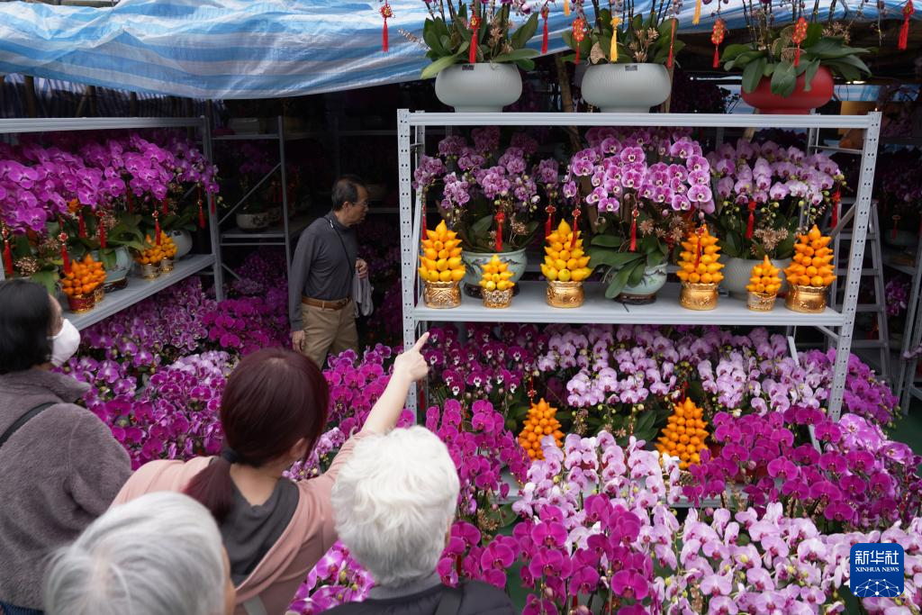 1月23日,人們在香港維多利亞公園年宵市場挑選鮮花。