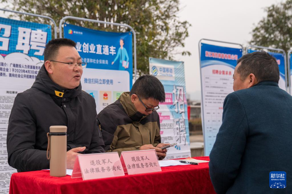 2月5日,務工人員在廣南縣站外參加當地組織的專場招聘會。
