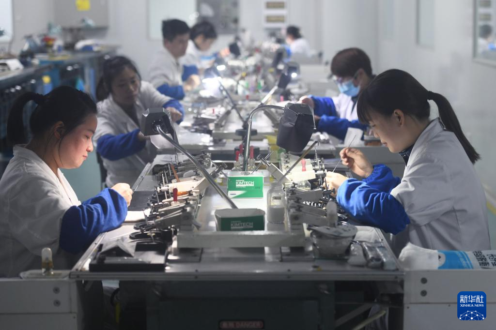 2月5日,工作人員在浙江省杭州市蕭山區所前鎮一家光電儀器企業生産車間加工醫用內窺鏡鏡頭。