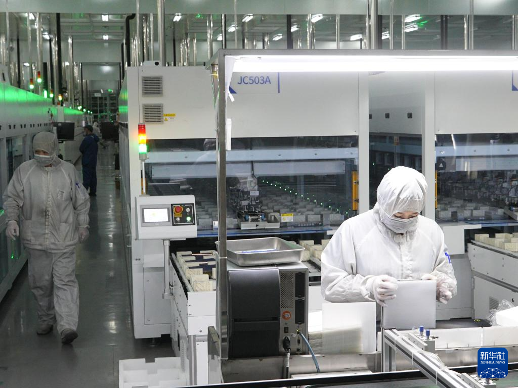 2月5日,工作人員在河北省石家莊市高新區晶澳太陽能公司電池車間包裝産品。