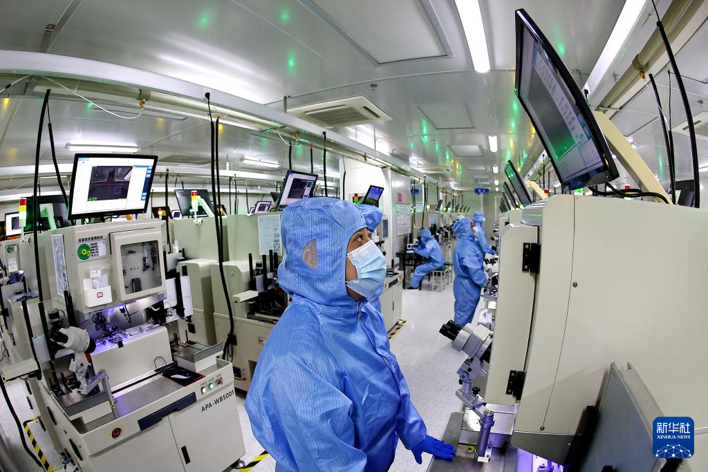 2月5日,江蘇句容經濟開發區一家電子産品生産企業工人在車間忙碌。