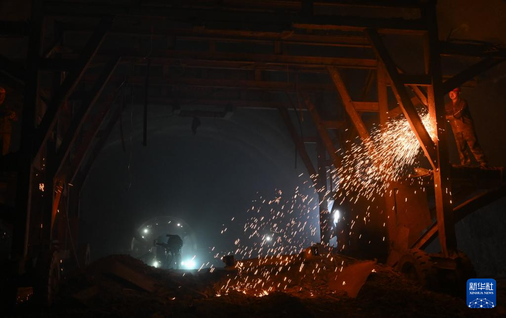 4月28日,在重慶市大足區,工作人員在磨盤山隧道內施工。
