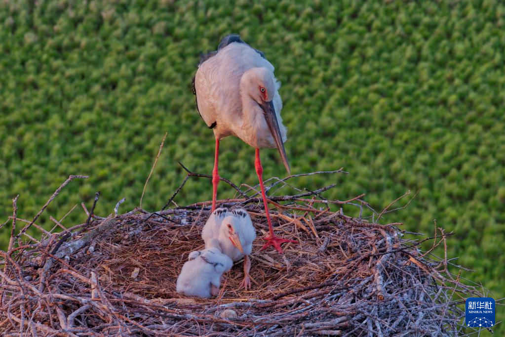近日,春季北歸黑龍江省的東方白鸛迎來了繁育期。東方白鸛是國家一級保護動物。