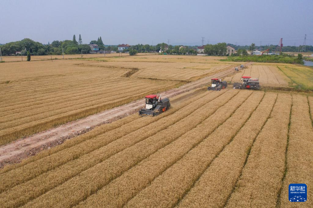 近期,浙江省湖州市長興縣虹星橋鎮的萬畝小麥迎來收穫季,當地種植戶抓住晴好天氣全面開啟小麥收割。