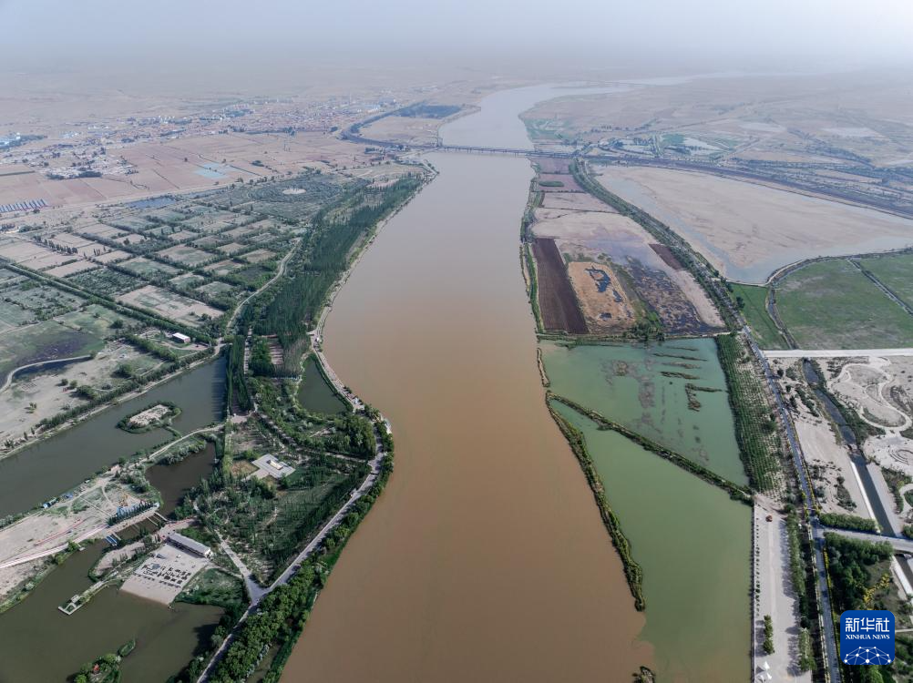 這是5月28日拍攝的位於內蒙古巴彥淖爾市磴口縣的黃河內蒙古巴彥淖爾段(無人機照片)。