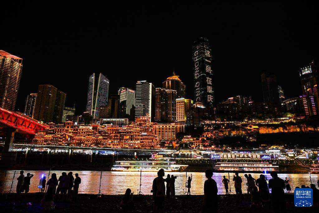 5月28日,遊客在嘉陵江邊欣賞洪崖洞夜色。