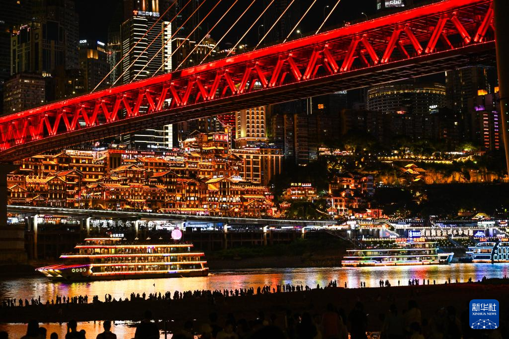 5月28日,遊客在嘉陵江邊欣賞洪崖洞夜色。