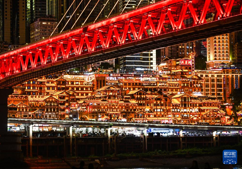 重慶洪崖洞位於嘉陵江邊千廝門大橋旁,倣巴渝傳統建築吊腳樓依山而建。每當夜幕降臨,洪崖洞依山臨水的吊腳樓燈火輝煌,美輪美奐,成為遊客打卡、遊覽的熱門景點。