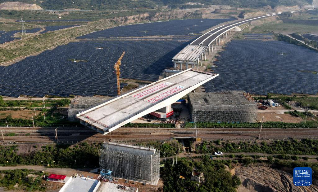 河南沿太行山高速公路跨焦柳鐵路立交橋成功轉體