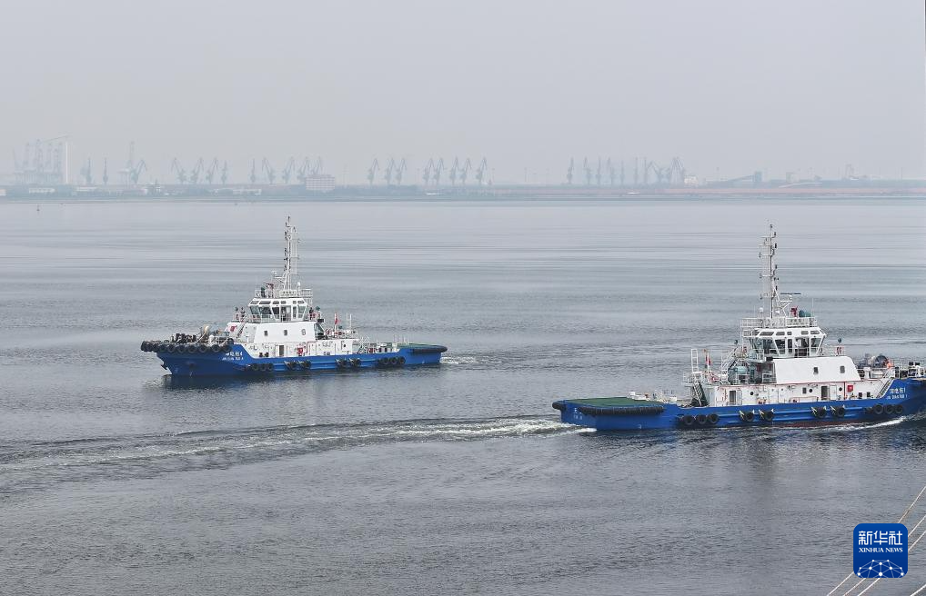 8月13日,由4艘純電動港作拖輪組成的“綠色艦隊”在中船天津碼頭鳴笛啟航。