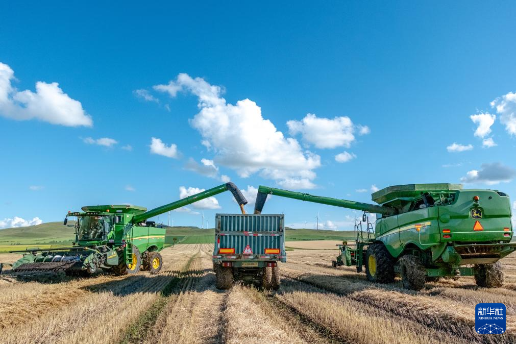 近日,位於內蒙古呼倫貝爾市額爾古納市的呼倫貝爾農墾拉布大林農場19.22萬畝小麥迎來豐收季,當地農民搶抓農時,以大規模機械化的方式開展收割、晾曬作業。