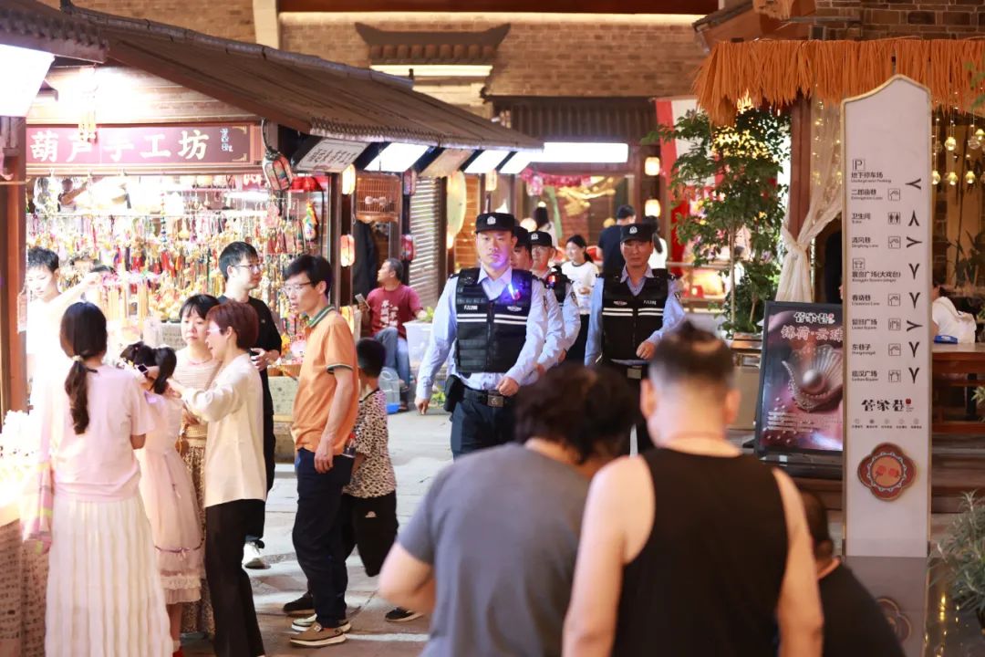 為應對客流高峰,襄城區公安分局在各個景區組建警景巡邏小隊,全員出動,結合景區熱力圖,增設重點巡線、安全巡查點,聯合巡防大隊、特警支隊,以“步巡+車巡+視巡”的方式開展全天候巡防,全力保障遊客安全。
