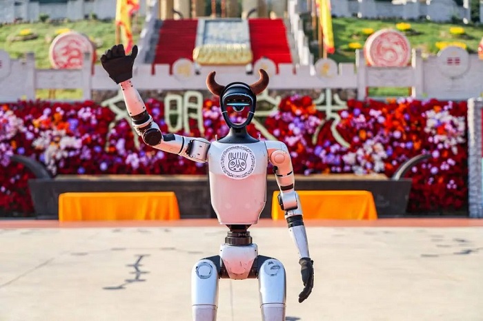 “大家好,我是‘炎炎’,我發佈乙巳年炎帝文化廟會文明之光活動主題是‘天地人和,大道炎炎’。”隨著清脆的電子音響起,智慧機器人“炎炎”作為炎帝文化AI使者緩步登臺,與主持人互動併發布活動主題。更令人矚目的是,3米高的“神農機甲戰士”震撼亮相,將炎帝神農的卡通形象與未來科技感機甲完美融合,與遊客熱情互動,成為全場焦點。這一創新設計不僅吸引了年輕群體的關注,更讓傳統祭祀煥發出全新的生命力。