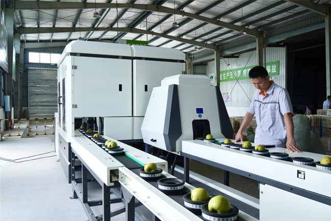 在鎮上新建的百里洲砂梨智慧産業園,園內的精細化檢測分選設備令人眼前一亮:自動化分選線上,每顆砂梨都要通過“X光體檢”,重量、糖度、黑心等內部指標合格方能進入包裝環節。