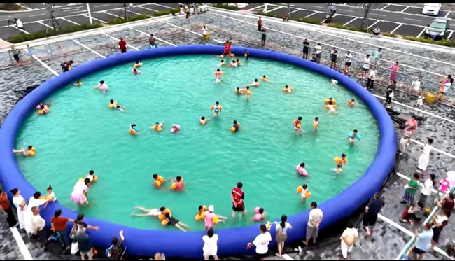 今夏,隨縣在15個鄉鎮免費投放30個攜帶型泳池。這些泳池有的採用支架式結構並配備凈化設施,有的則是充氣式設計,均選址在人口密集區域,方便孩子們就近使用。