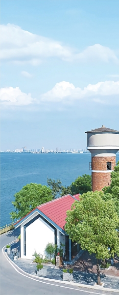 標誌性的磚紅色水塔下,一間閒置農房迎來翻新。有著咖啡運營經驗的翁海濱一眼相中了這間面朝“大海”的小屋,將其租下。