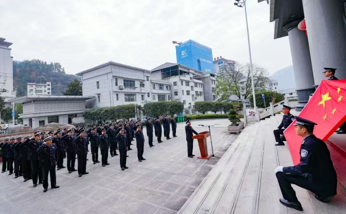 憲法為綱,警心鑄魂。12月4日上午,湖北省襄陽市保康縣公安局隆重舉行“國家憲法日”憲法宣誓儀式。局黨委副書記、政委楊軍帶領80余名青年民警代表,面向國旗莊嚴宣誓,以錚錚誓言踐行憲法精神、鑄牢忠誠警魂。