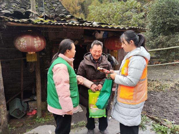 活動期間,和一社工、大龍村村委工作人員與“龍溪茶農”領袖志願者隊伍成員緊密協作,分批次深入60戶結對對象家中開展幫扶。每到一戶,社工及在地茶農領袖成員首先將精心準備的生活物資送到老人手中,耐心向老人講解物資的使用注意事項。隨後,大家與老人親切交談,詳細了解老人近期的生活狀況,包括飲食起居、身體健康情況、冬季取暖是否安全等;對於家中仍有茶葉種植的老人,茶農領袖志願者還結合自身經驗,為老人提供茶樹冬季管護的實用技巧,解決老人在生産中的困惑。村委工作人員則認真記錄老人提出的需求和建議,以便後續針對性地完善幫扶措施。此外,針對日常幫扶中,了解到部分結對對象需要到府理髮服務,本次入戶連結居家養老照護資源,為其提供到府理髮服務,全方位傳遞關愛與溫暖。