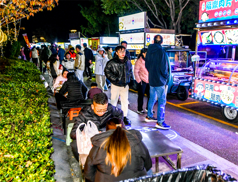 2025年,高淳區城管部門以“彈性包容,多元共治”為核心,將城市閒置空間轉化為規範化夜市疏導點,同時在全市率先出臺《推動外擺與夜市健康有序發展若干措施(試行)及實施細則》,全方位為夜市發展保駕護航。通過“攤主自治+多部門共管”機制,高淳區成功打造了大豐河夜市等一批疏導點。曾經的城市治理難點,正蛻變為點亮民生與消費的“夜經濟名片”。
