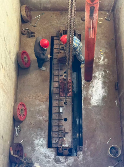 芒稻船閘聯合揚州船閘應急保障中心,順利完成閥門出水檢查養護工作。聯合檢查小組對出水後的閥門門體、主側滾輪及止水系統等關鍵部件展開“地毯式”全面排查:細緻核查門體表面有無裂紋、變形等隱患,逐個檢測主側滾輪轉動靈活性及磨損程度,重點排查止水系統密封性能,確保不留死角、不漏隱患。針對檢查中發現的主、側滾輪磨損問題,工作人員當即制定整改方案,現場完成下游閥門2隻主滾輪、1隻側滾輪,以及上游閥門各1隻主、側滾輪的更換作業,確保每一部件均處於最佳技術狀態。此次養護為冬季枯水期船閘安全高效運作提供了有力硬體支撐。