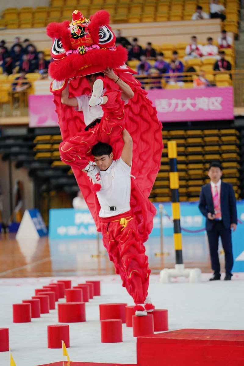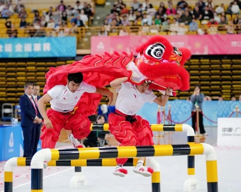 作為全運會首次全面擴容至 8個小項的群眾展演重點項目,本屆舞龍舞獅決賽為期三天(11月11日—13日),共設置南獅自選、南獅障礙、南獅傳統、舞龍障礙、北獅自選、舞龍規定、舞龍自選、彩帶龍自選(本屆新增)等競賽項目,匯聚了全國的 100余支頂尖隊伍、1300余名運動員同臺競技,盡顯全國龍獅運動最高水準。賽事日程緊湊激烈:11日南獅自選項目率先開賽,12日迎來“龍獅共舞”的賽事高潮,上午進行舞龍障礙、北獅自選項目決賽,下午展開南獅障礙與舞龍規定項目的巔峰對決,13日則以舞龍自選、彩帶龍自選及南獅傳統項目的壓軸比拼收官。