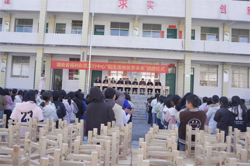 11月28日,隆回縣羅洪中學的操場上1020套嶄新的課桌椅特別亮眼。該校師生與邵陽市福彩發行中心、隆回縣民政局、中共羅洪鎮委員會、羅洪鎮人民政府有關人員共同見證了一場溫暖的“福澤瀟湘,築夢未來”捐贈儀式——湖南省福利彩票發行中心向該校捐贈1020套嶄新課桌椅,為這所位於湖南省歷史文化名鎮的鄉村學校送來“愛心大禮包”。