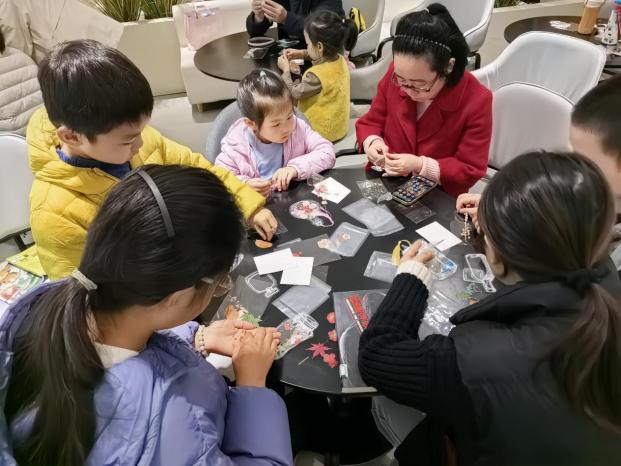 留下社區的“留下·有意思書房”裏,十余組家庭沉浸在“花葉凝香、書韻綿長”親子手工書籤DIY活動中。孩子們小心翼翼地用鑷子夾起花瓣和葉片,在透明卡紙上精心佈局,將自然之美定格在方寸之間。