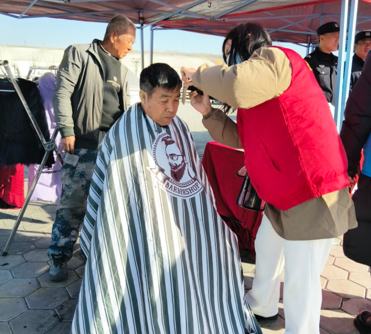 五大免費服務溫情上線,成為現場亮點。義診區醫護人員細緻問診、普及健康知識;公益理髮區醫護人為60歲以上老人、兒童、殘疾人等群體免費修剪髮型;愛心拍照區醫護人為老人定格幸福瞬間,現場列印贈送相框;“衣迴圈,愛無界”專區居民踴躍捐贈閒置衣物,傳遞愛心;德係口腔團隊提供專業口腔檢查與護理指導。“志願紅”“執法藍”“醫護白”交織,暖意融融。