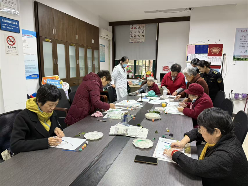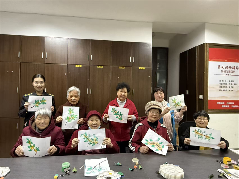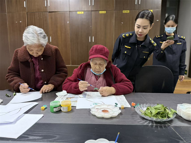 巧手翻飛,創意無限。居民們用桂花葉在紙上拓印出深秋的意象,寓意“冬日裏的生機”。一片片落葉被重新賦予生命,成為承載美與情感的藝術載體,也讓“變廢為寶”的環保理念悄然紮根。