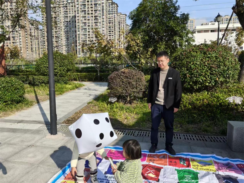 活動開始後,工作人員首先帶領大家學習垃圾分類小知識:哪些屬於可回收物、哪些是易腐垃圾、樹葉應該投放到哪……小朋友們聽得格外認真,還用投骰子的方式選擇並回答垃圾分類問題,現場氣氛既輕鬆又熱鬧。