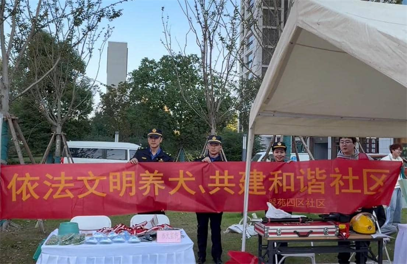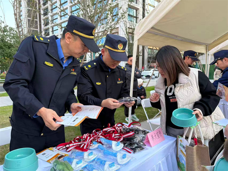 在這場涵蓋風尚秀、百家宴、主題遊園等多元活動的社區盛事中,由杭州市綜合行政執法局水務水利執法大隊聯合西湖區綜合行政執法局翠苑中隊共同設置的文明養犬宣傳點,成為了“活力橙·寵物經濟區”裏最受歡迎的角落之一,將依法、文明、科學的養犬理念傳遞到居民心中。