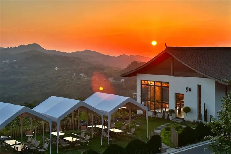十余家在地商家的深度參與,實現了從“客流量”到“價值流”的轉變:雲棲山谷的文化特色活動,讓遊客在住宿之餘,穿行于光影與木香交織的走廊,沉浸在濃淡適宜的禪味空間;四合山居、潤錦和庭的民宿不僅演繹著古典與現代相結合的文化氛圍,更成為慢生活載體,有人住過後感慨“要帶父母來感受這份寧靜”;垚望臺邀您坐下來,品一杯濃香四溢,看雪山雲海倒映在茶盞裏,與自然開啟一場山間清澈的對話;見晴小院的下午茶、城外的悅光的烤肉、涼水井的消費抽獎活動,讓鄉村美食成為傳播媒介,形成“體驗-消費-分享”的完整閉環。“輕社交”的理念貫穿始終,卻沒有刻意地設計:在徒步途中,陌生人互相提醒路況;手作工坊裏,不相識的遊客圍坐學習;落日派對上,年輕人在分享零食、暢談見聞中自然相識;這種不刻意、不尷尬的社交方式,恰恰滿足了城市人對真誠連接的渴望,讓鄉村成為有溫度的社交場域。